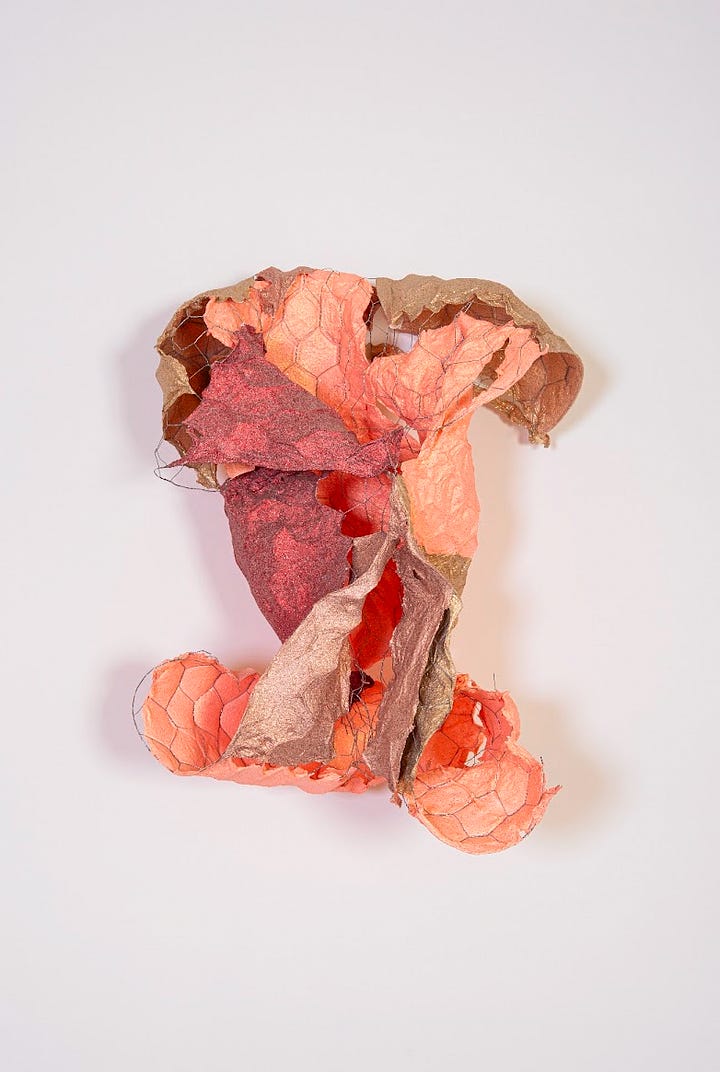 Both artists have a shared sensibility when it comes to form, favouring highly textured surfaces and surreal spontaneity.
